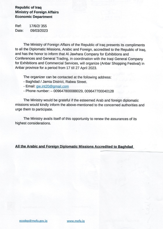 (Anbar Shopping Festival) in Anbar province for a period from 17 till 27 April 2023.