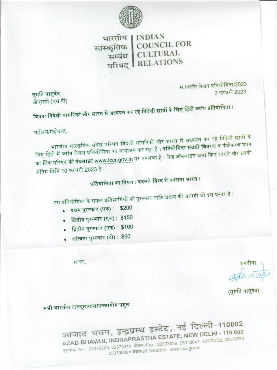 विदेशी नागरिकों और भारत में अध्ययन कर रहे विदेशी छात्रों के लिए हिंदी ब्लॉग प्रतियोगिता।