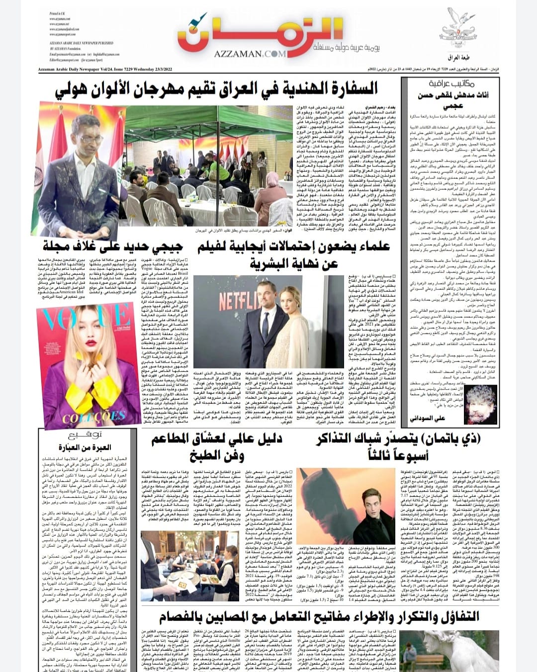 Celebration of Festival of Colours - Holi in Baghdad - Al Zaman newspaper , March 22, 2022