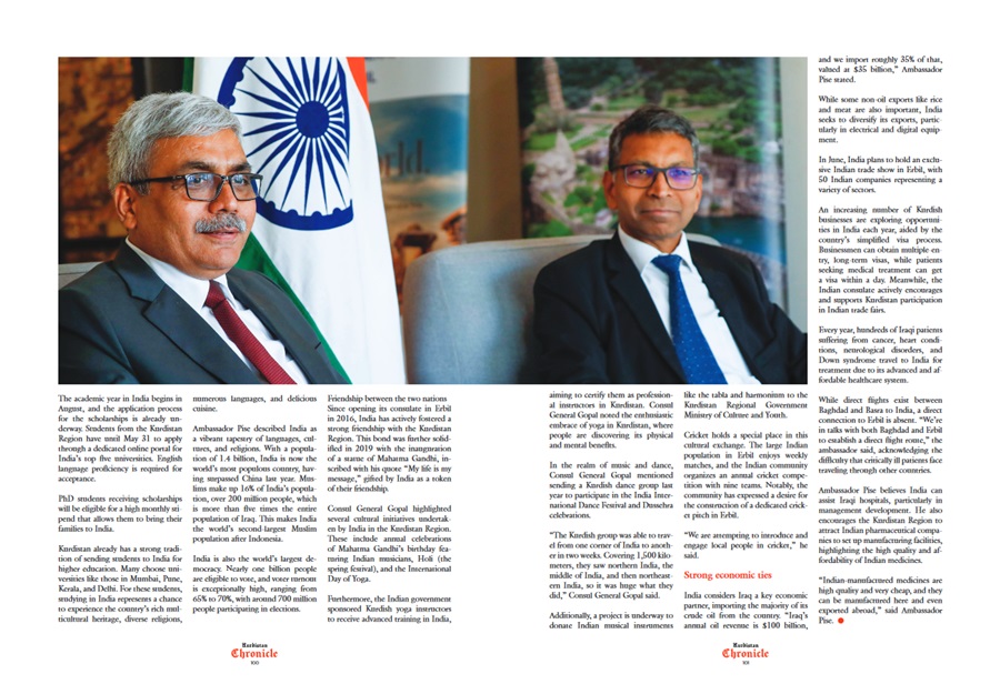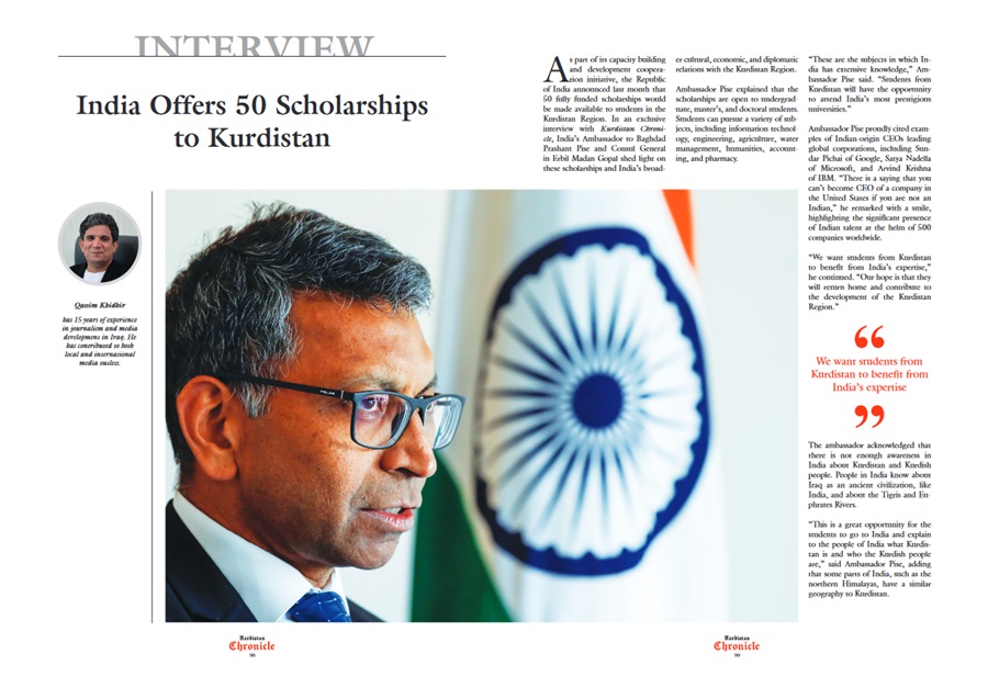 Ambassador Prashant Pise's interview published by the Kurdistan Chronicle. Indian CG in Erbil also explained the activities undertaken by the Consulate.