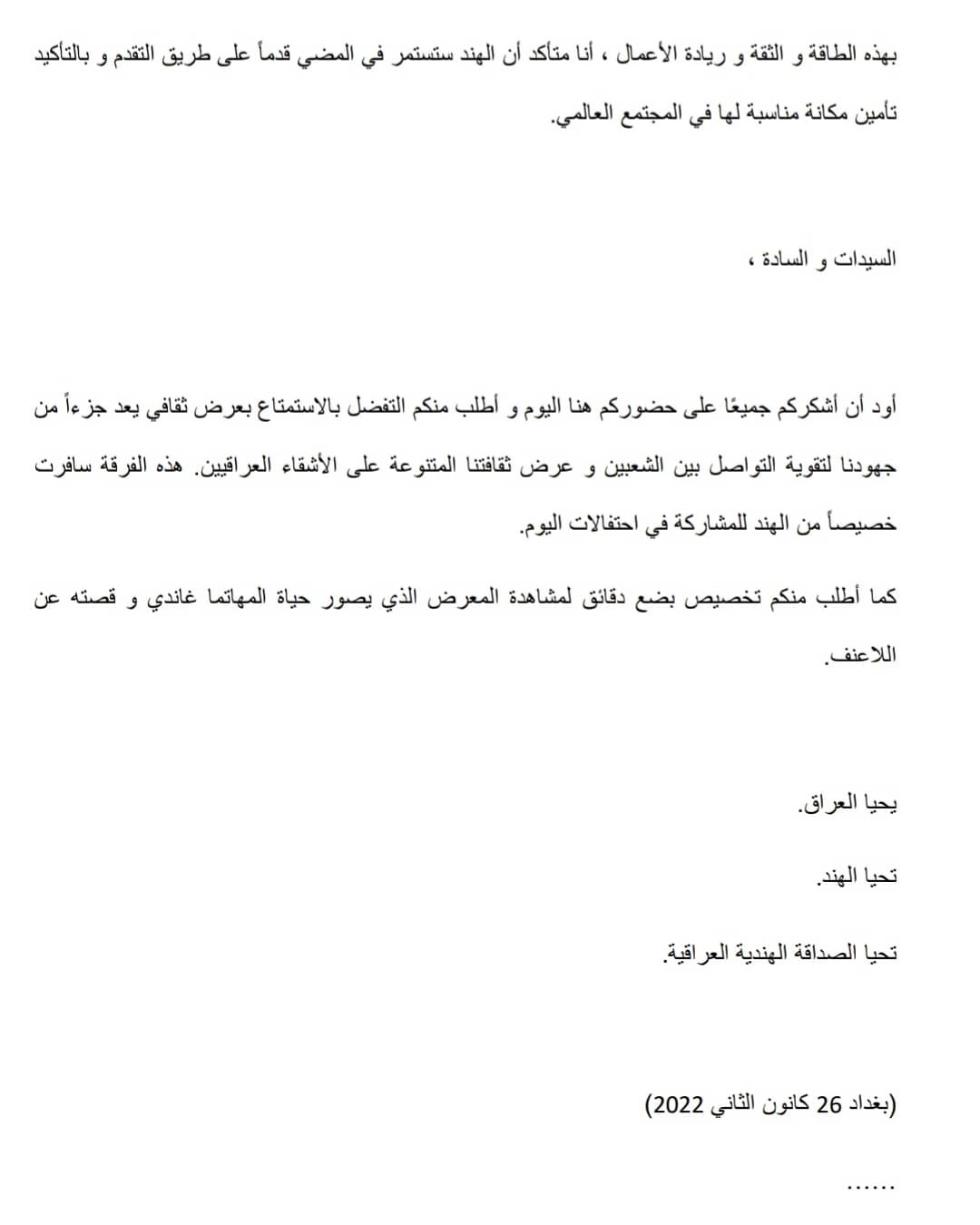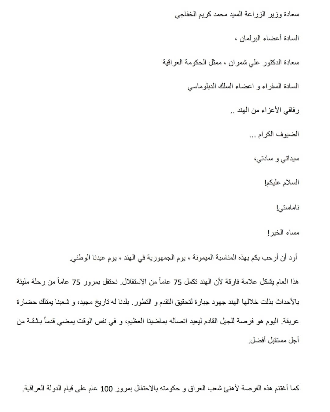 كلمة سعادة السفير في احتفالية اليوم الوطني يوم 26 كانون الثاني 2022 في نادي الصيد العراقي ببغداد ".