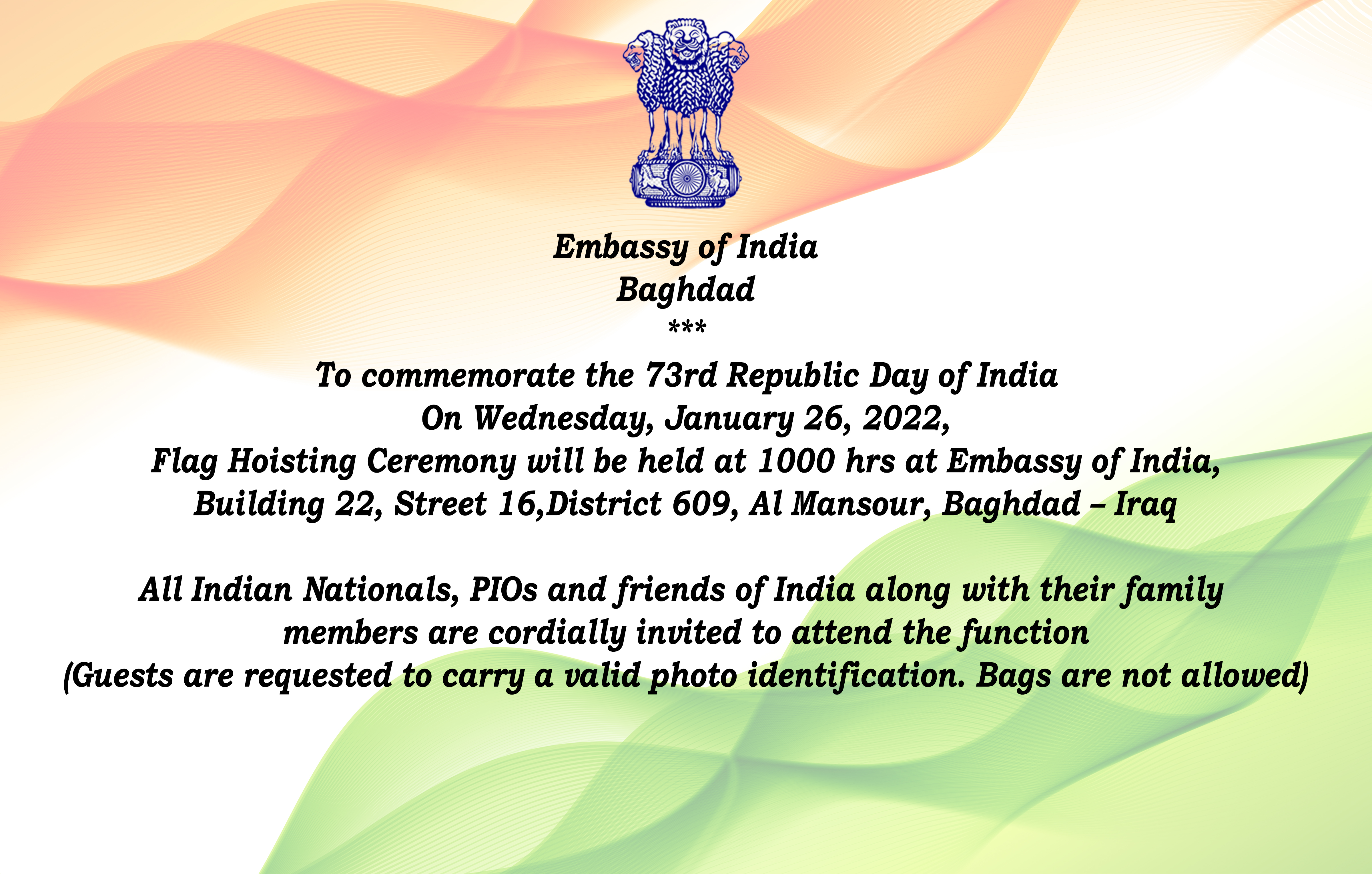 Celebration of 73rd Republic of India at the Embassy of India, Baghdad