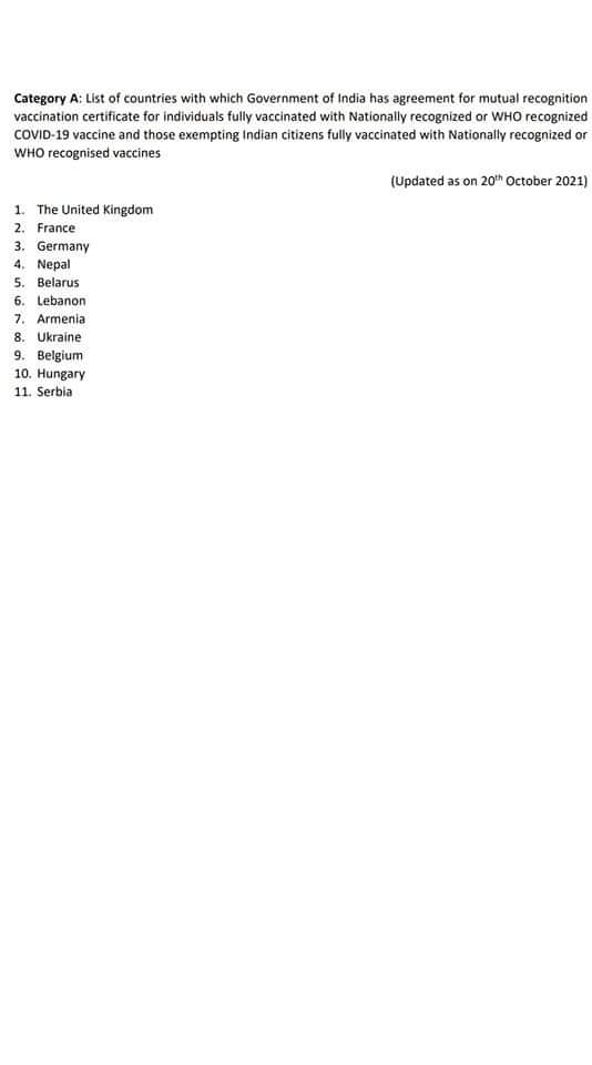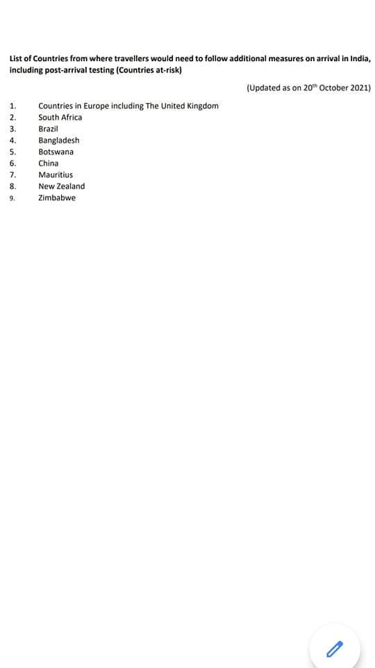 ‏تعليمات الحكومة الهندية للوافدين الأجانب صادرة بتاريخ 20 تشرين الاول 2021 (لتحل محل جميع الإرشادات الصادرة حول هذا الموضوع في 17 شباط 2021 و بعده) يتم العمل بهذه التعليمات اعتباراً من تاريخ 25 تشرين الاول 2021 الساعة (00:00) بتوقيت الهند)