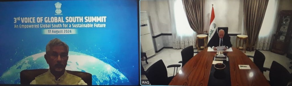 H.E. Mr. Fuad Mohammed Hussein, Deputy Prime Minister for International Relations Affairs and Foreign Minister of Republic of Iraq addressed the 3rd Voice of Global South Summit's Foreign Ministers' virtual session on 17th August, 2024.