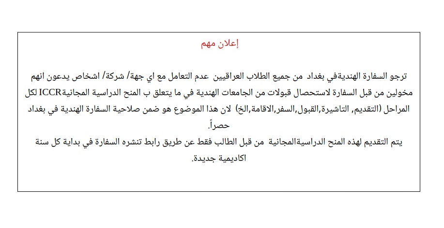 Important Notice for ICCR Applicants.