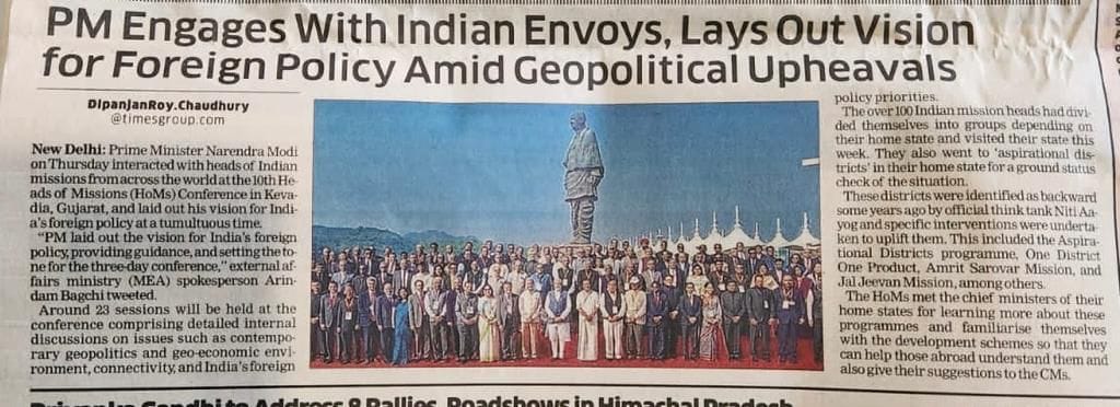 Prime Minister Narendra Modi engages with Indian envoys and lays out vision for foreign policy at the 10th Heads of Missions (HoMs) Conference in Kevadia, Gujarat on 20th Oct 2022.