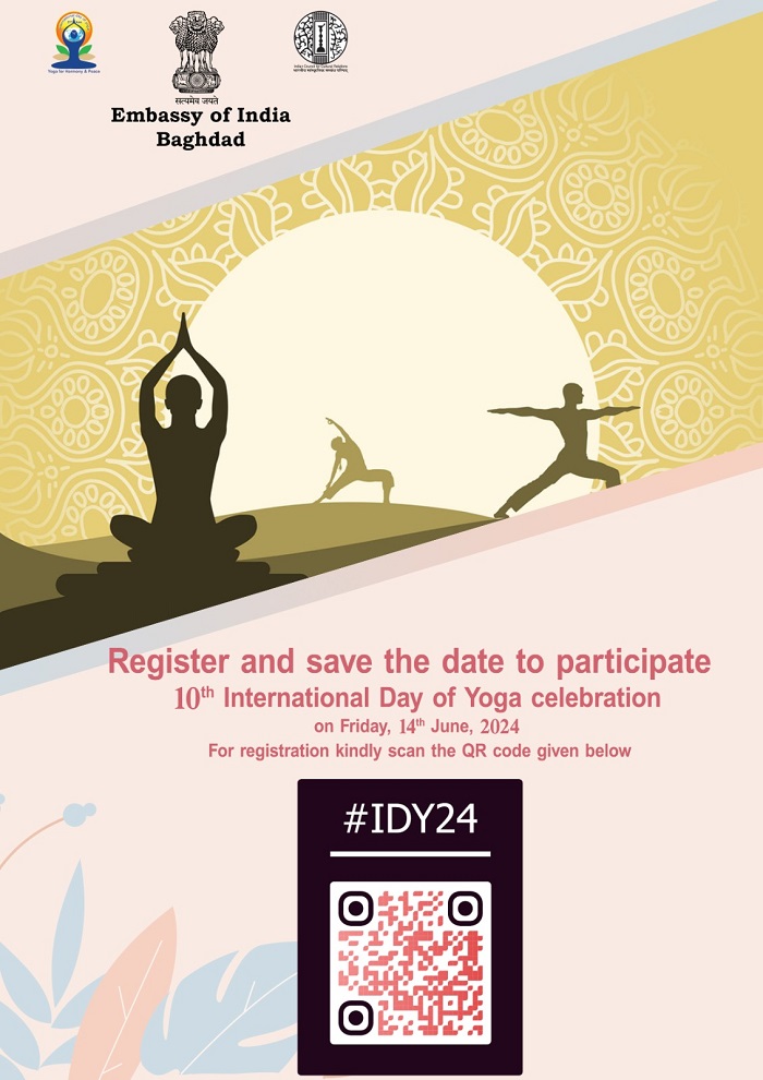 Registration link for participation in 10th International Day of Yoga 2024 scheduled to be held on 14th June at Ministry of Youth and Sports, Baghdad