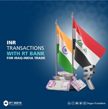 Region Trade Bank, a leading Iraqi bank announced trade transactions in Indian Rupees between India and Iraq. It will accelerate commercial operations between the two friendly countries. This initiative will reduce transaction costs and eliminate currency exchange hurdles. Indian and Iraqi companies can take advantage of this service. The Region Trade Bank has opened an account in Indian Rupees with DBS Bank in New Delhi. Compliance with Central Bank of Iraq regulations is necessary for this service. For queries contact at Phone-0662110010, Email-Callcenter@rtb.iq