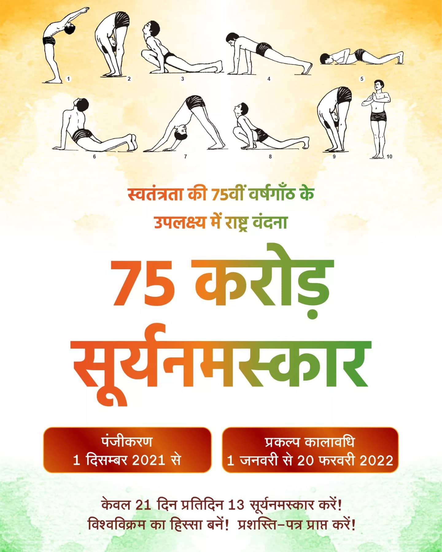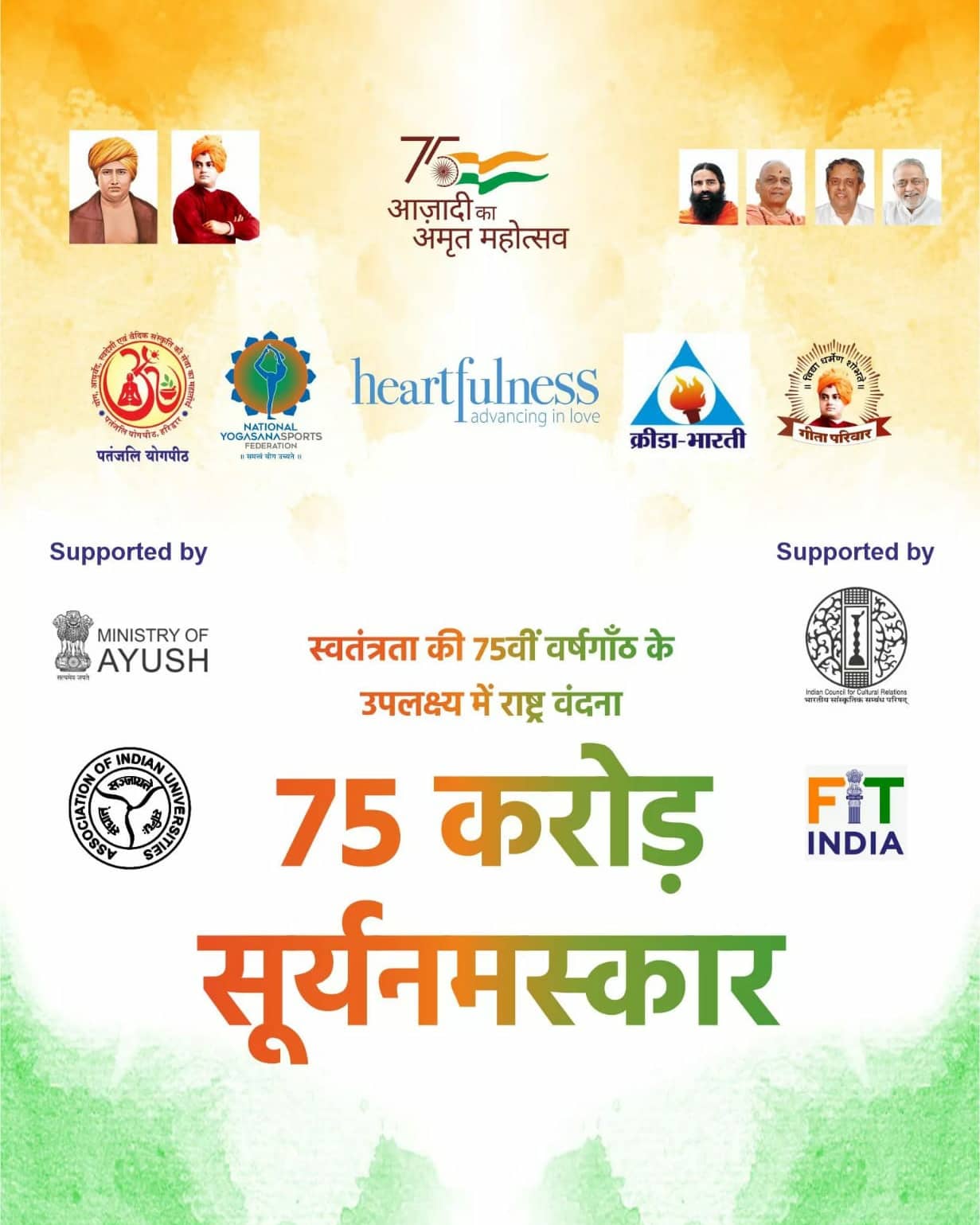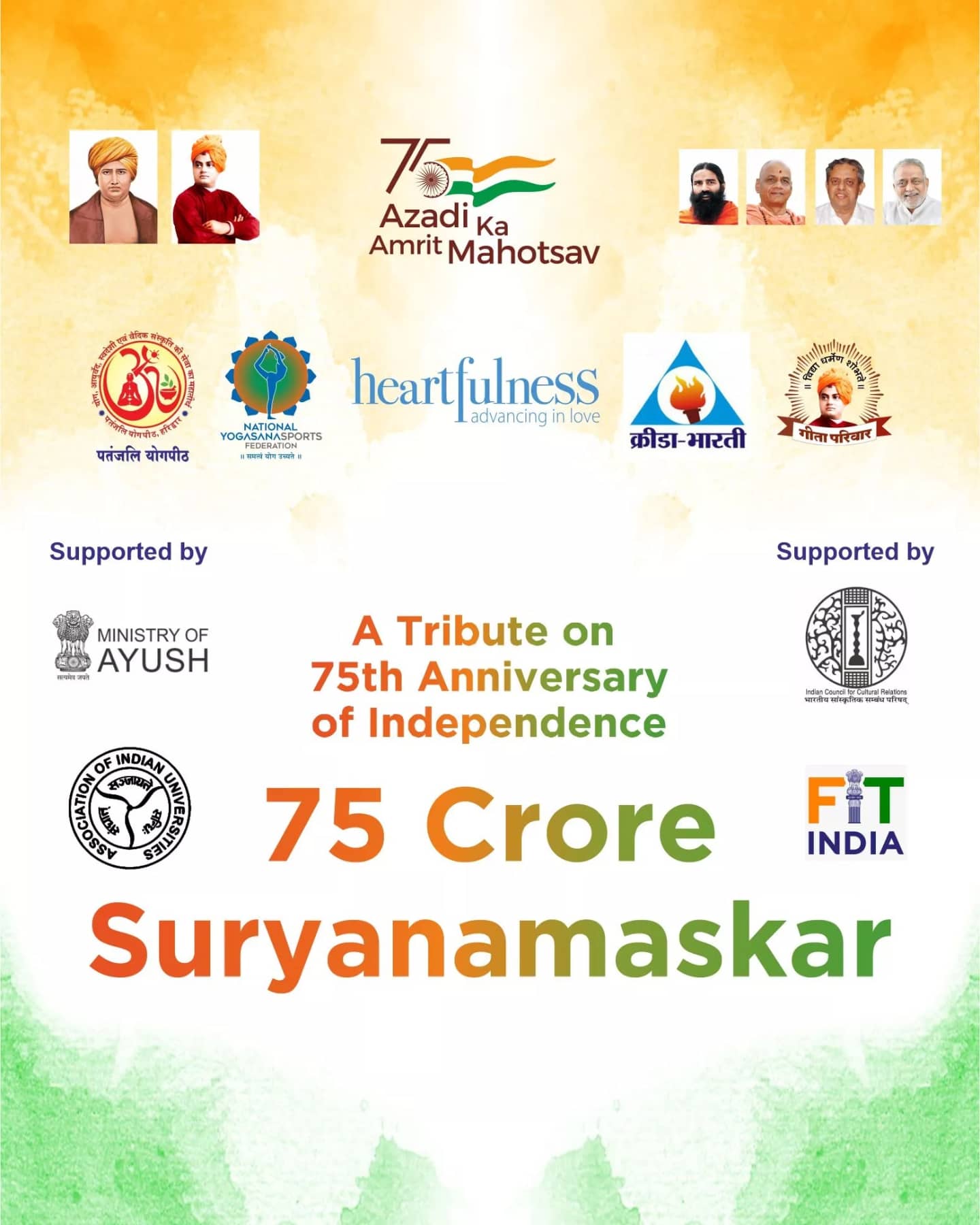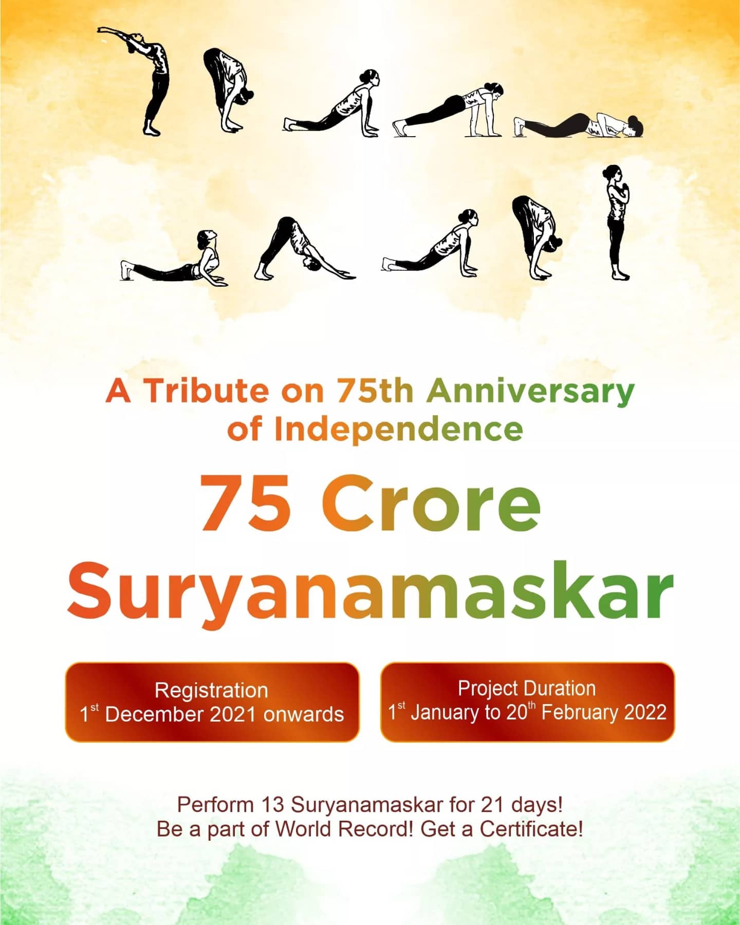 ضمن فعاليات  AzadiKaAmritMohatsav (آزادي كا آمرت موهاتساف) ينظم المجلس الهندي للعلاقات الثقافية ICCR و بالتعاون مع الاتحاد الوطني لليوغاسانا الرياضي مشروع "750 مليون سورياناماسكار". يهدف المشروع إلى دعوة عشاق اليوغا من جميع أنحاء العالم لأداء أكثر من 750 مليون سورياناماسكارز (حركات يوغا) من 12 كانون الثاني يناير إلى 7 شباط فبراير 2022. سيتم منح شهادات لجميع المشاركين الذين يتنافسون لمدة 21 يومًا. يمكن للأشخاص المهتمين زيارة موقع الويب الموضح أدناه للتسجيل:- https://www.75suryanamaskar.com