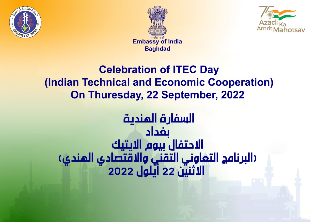 سيتم الاحتفال بيوم التعاون التقني والاقتصادي الهندي (ITEC) في السفارة الهندية ، بغداد في 22 ايلول 2022.